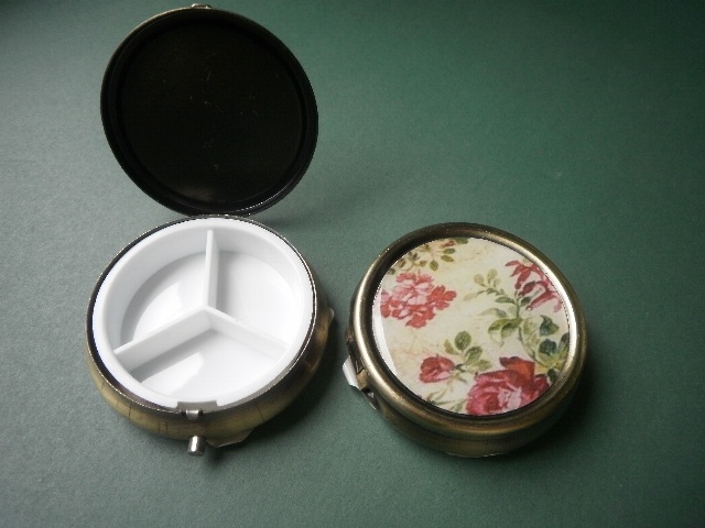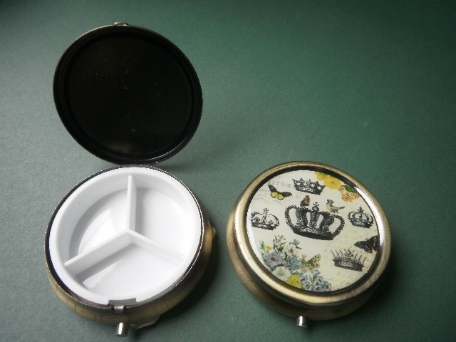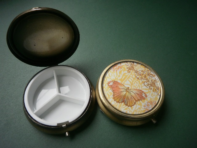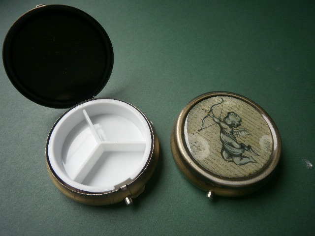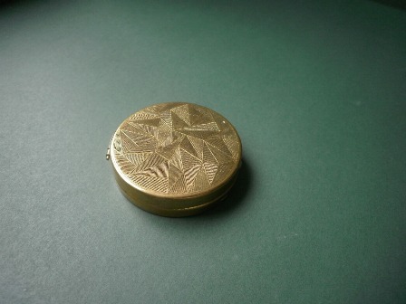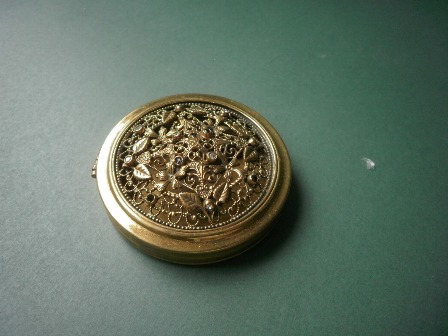 Régi réz szelence, a fedelén belül tükörrel, 4 cm átmérőjű |