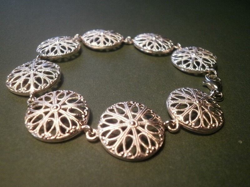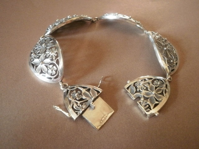 Áttört mintájú antikolt ezüst karkötő, 925-ös sterling ezüstből, 12,8 gr, 19,5 cm hosszú |